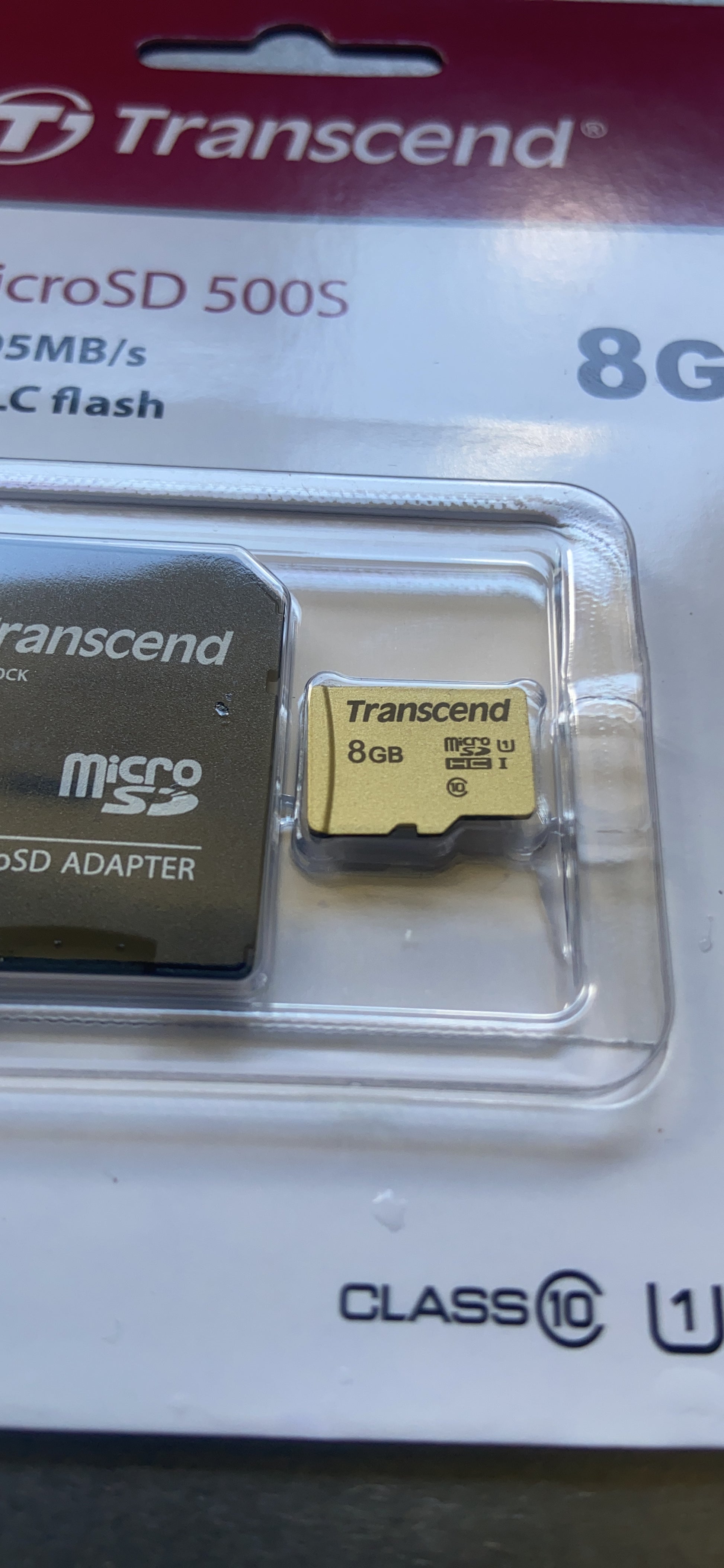 TRANSCEND Carte micro SDHC UHS I 500S Class 10 8 Go adaptateur SD inclus