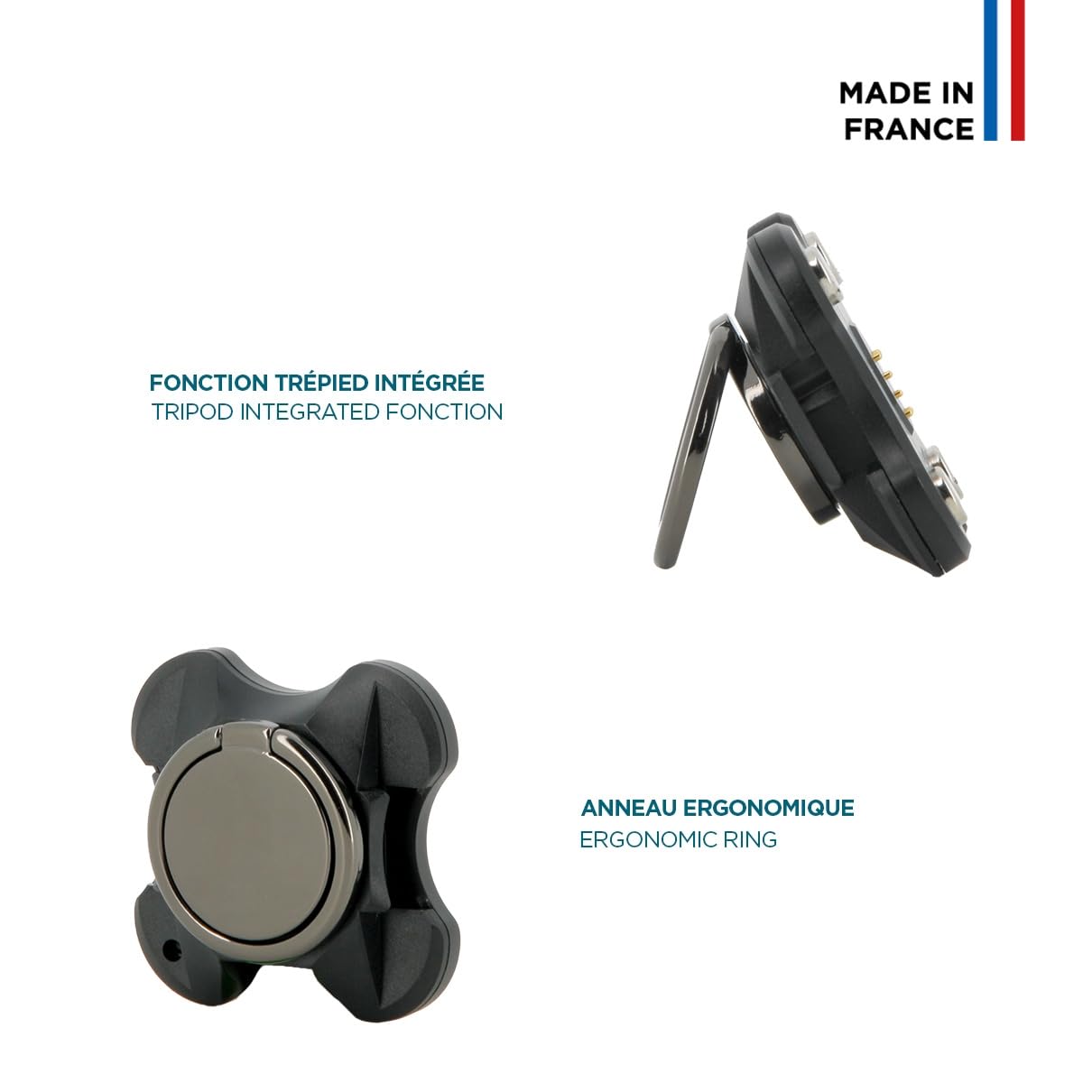 &bull Chargeur mobile 3-en-1 avec anneau de maintien et fonction trépied