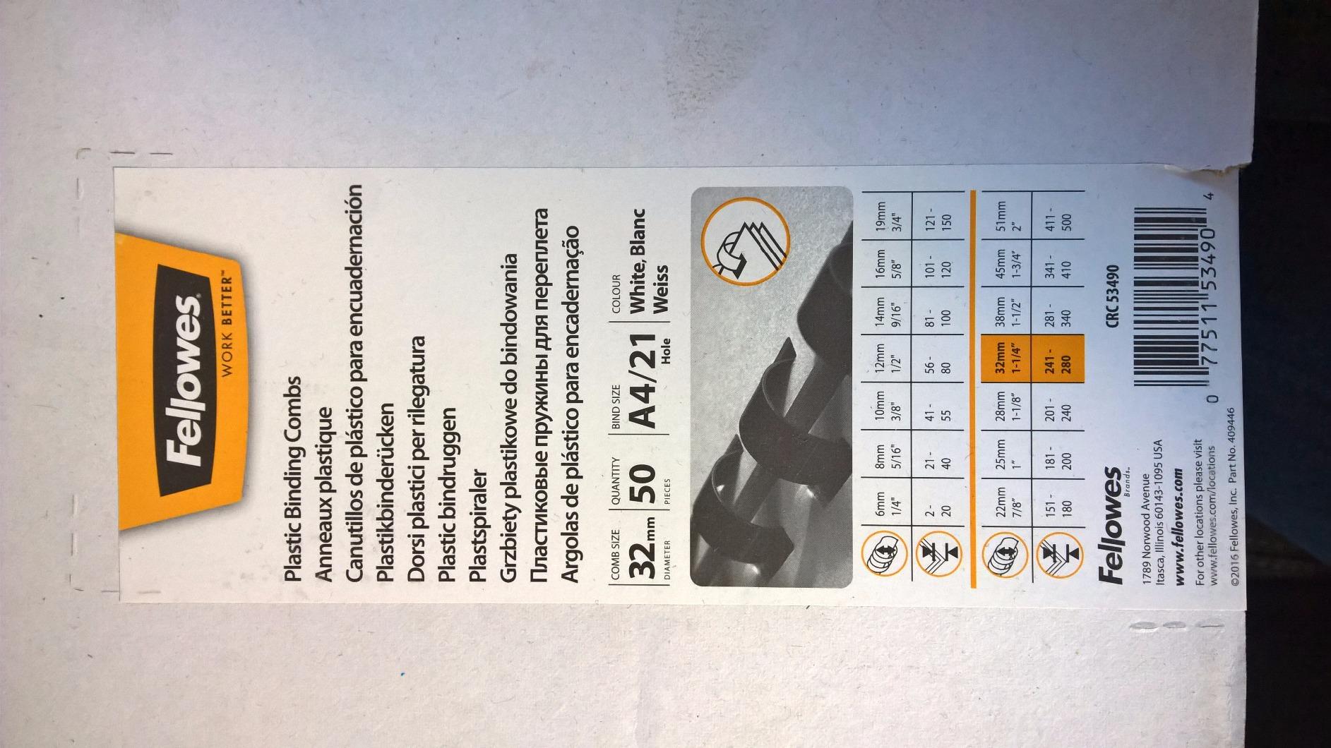 FELLOWES 5346206 Binding comb 12mm white