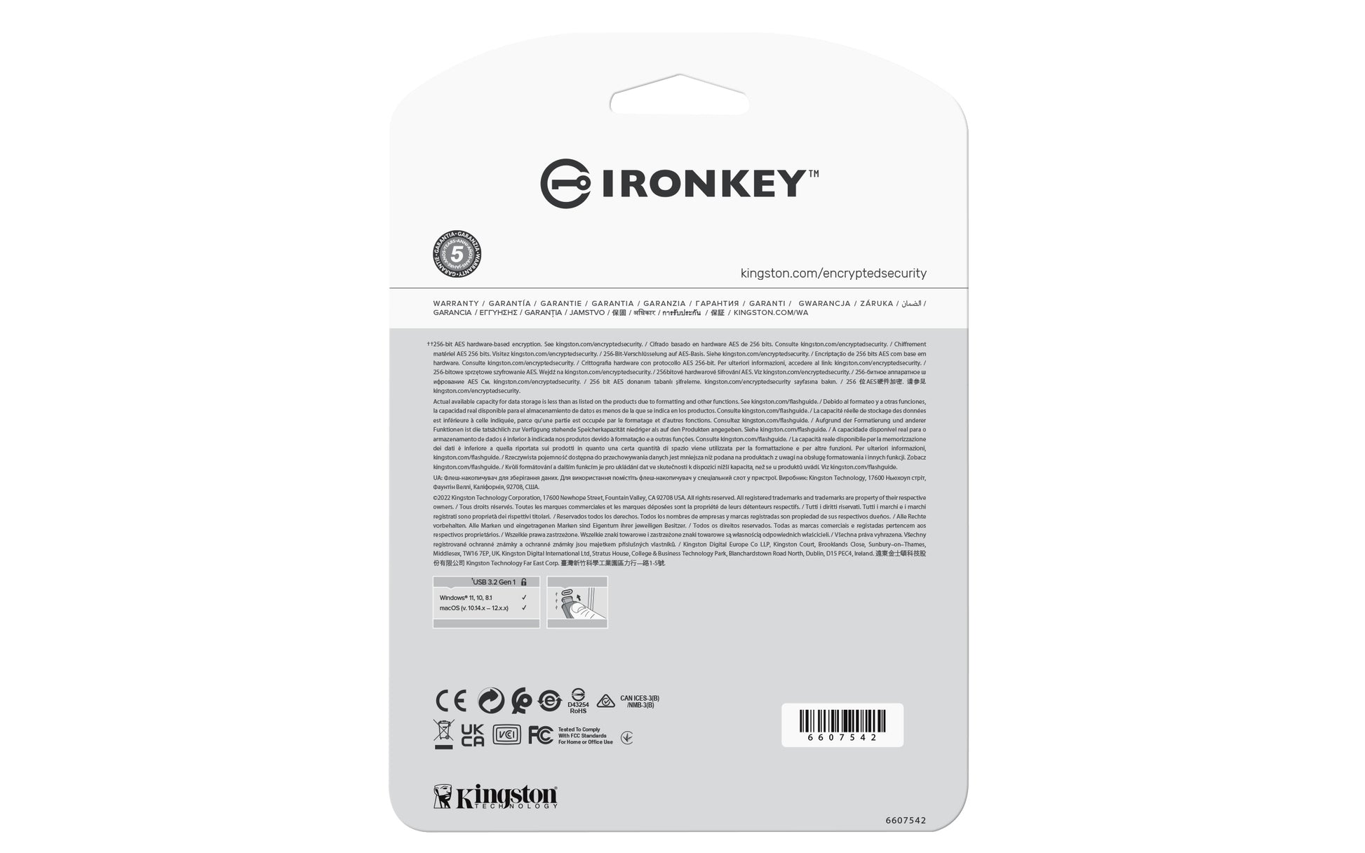 | Algorithme de sécurité soutenu | 256-bit AES-XTS, FIPS 197 |