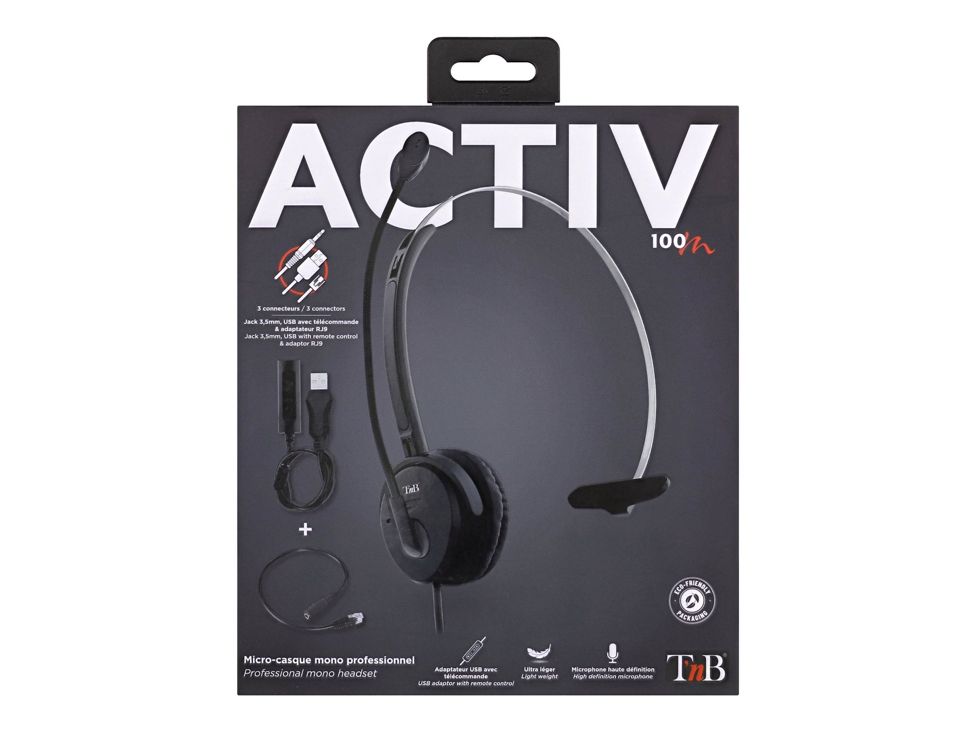 TNB Activ 100M Professional Mono Headset Jack Usb Rj9 Jack Wired Headset With Usb And Rj9 Adaptors Mono Earpad