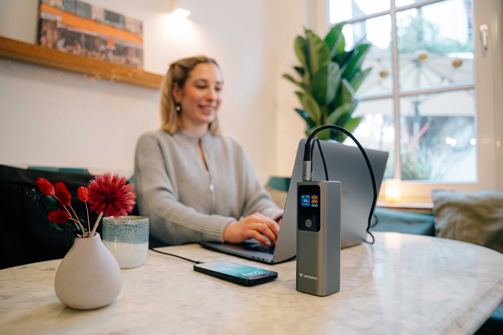 Verbatim Charge 'n' Go - Banque d'alimentation sans fil - support magnétique - 27000 mAh - 65 Watt - Fast Charge - 3 connecteurs de sortie (USB-C) - gris