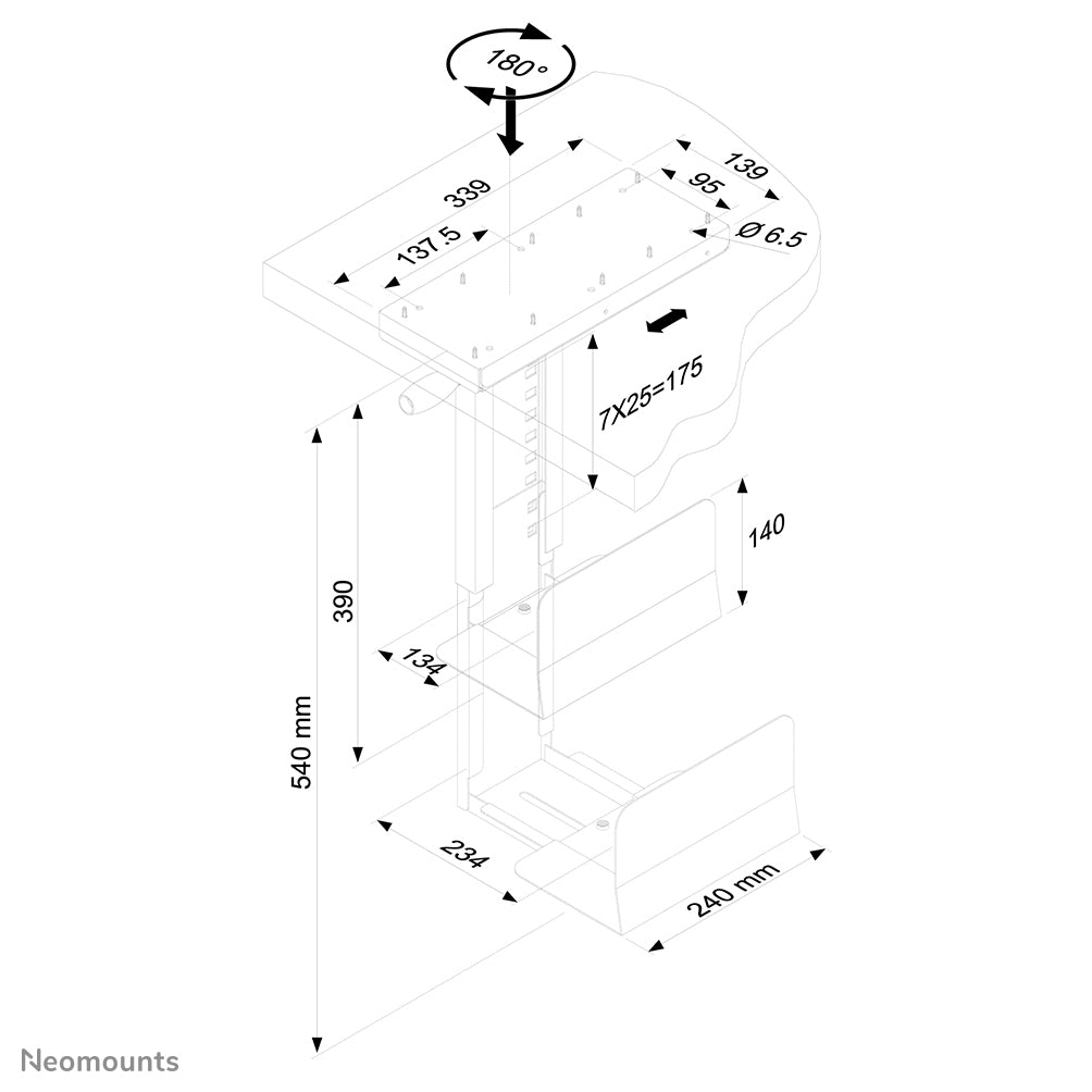 Neomounts CPU-D250 - Kit de montage (montage de CPU) - modèle pivotant - argent - sous le bureau