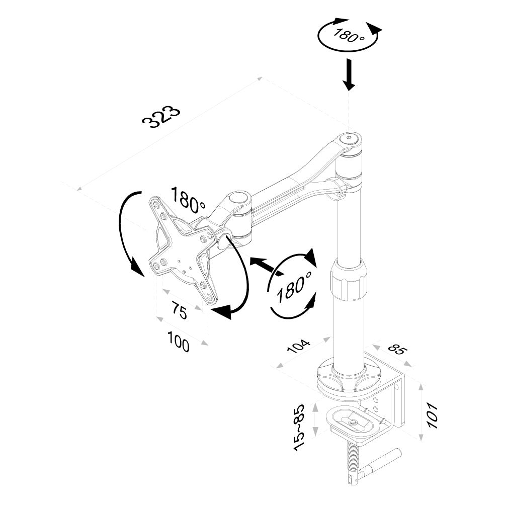 Desk Mount 10-30" Clamp Gas Spring SILVR