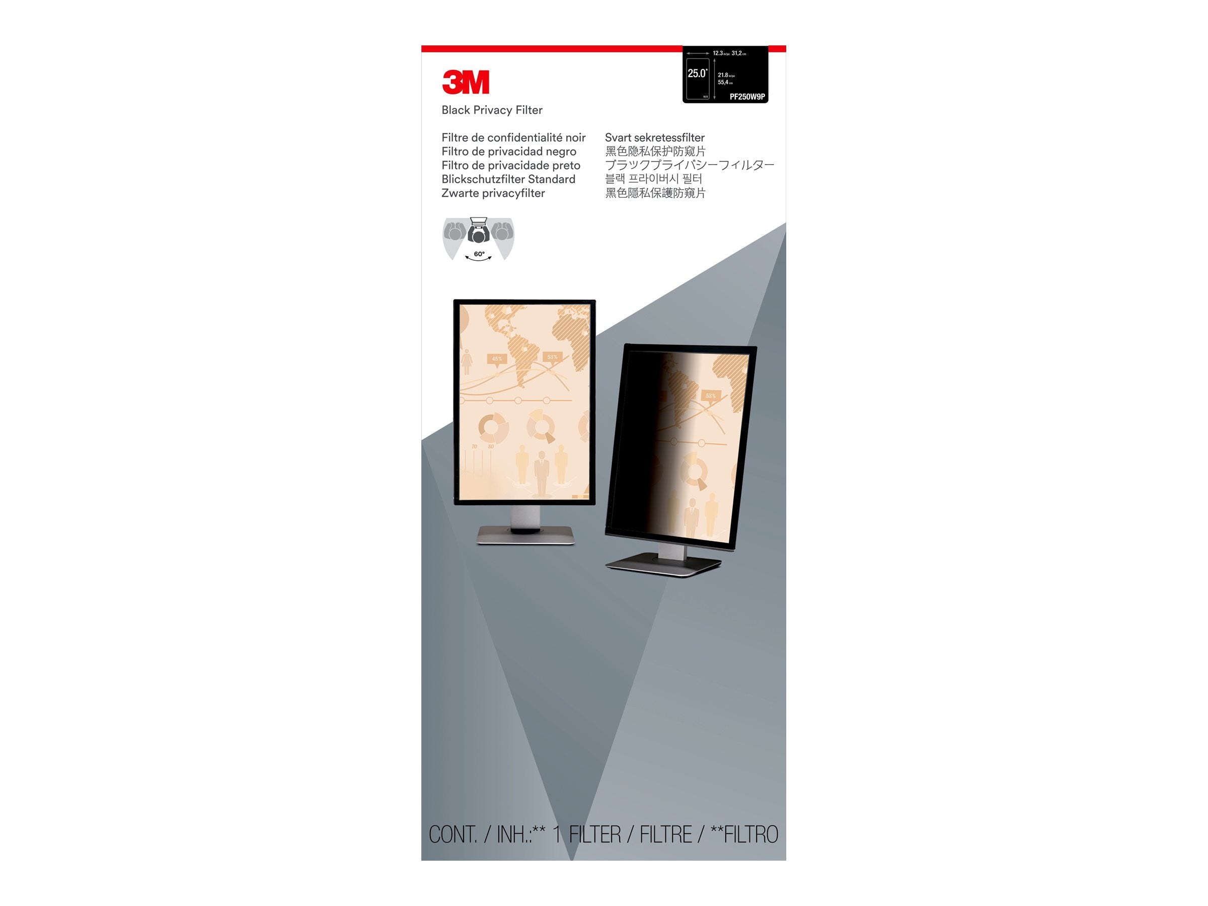 3M PF250W9P pour ordinateur fixe 25.0pcs - Portrait