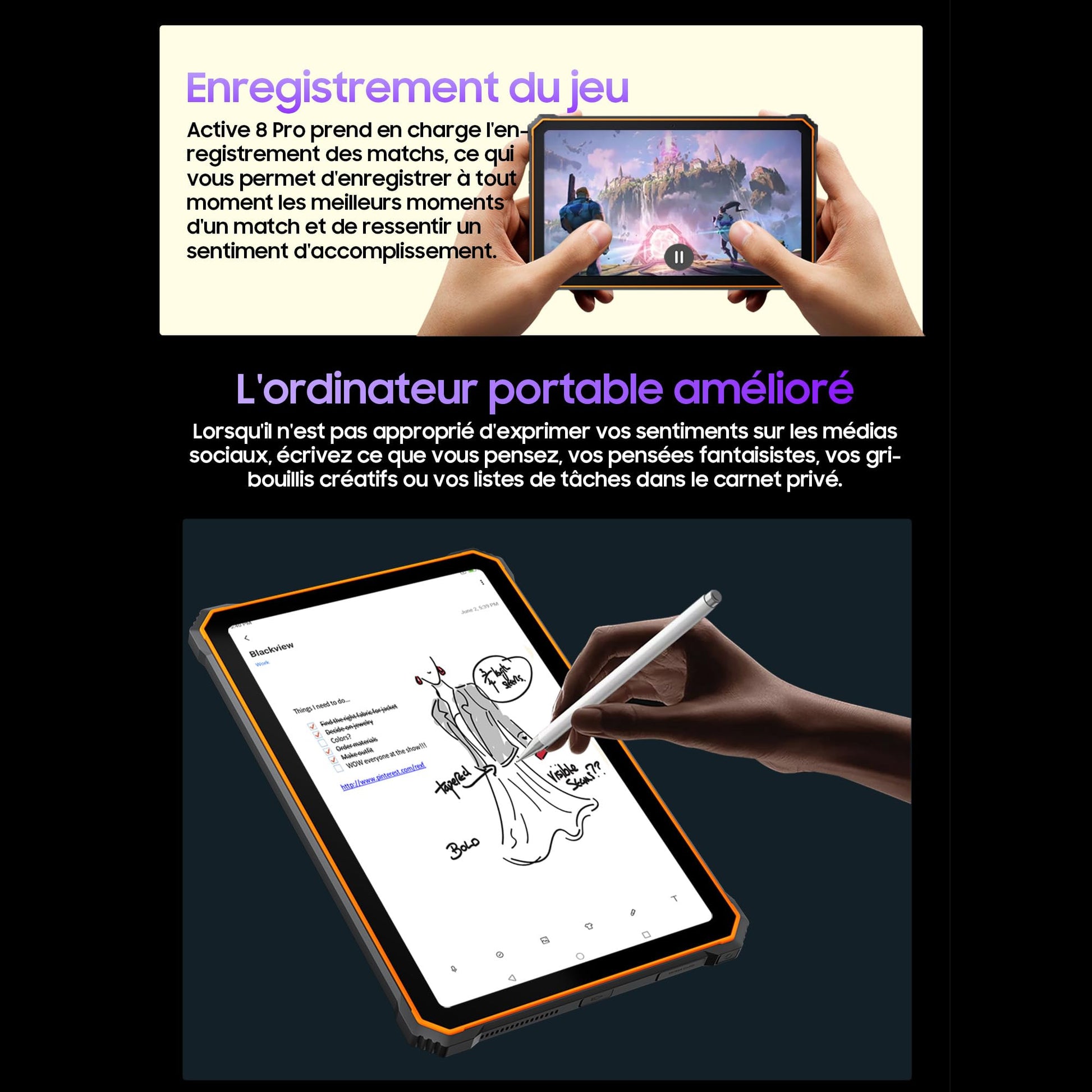 Blackview Active 8 Pro (Double Sim - Ecran 10.36'' - 4G/LTE - 256 Go, 8 Go RAM) Noir