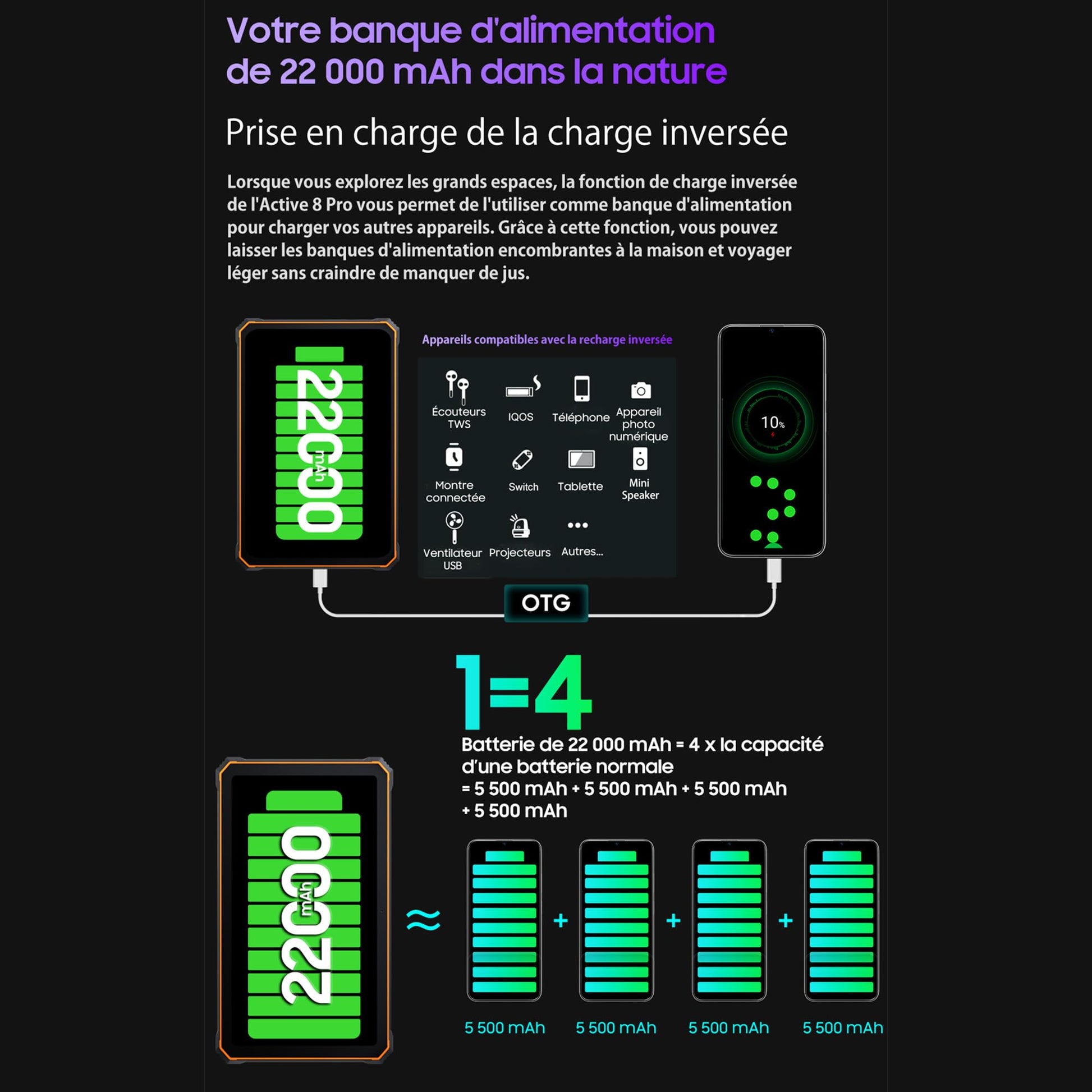 - Batterie Li-Po de 22 000 mAh