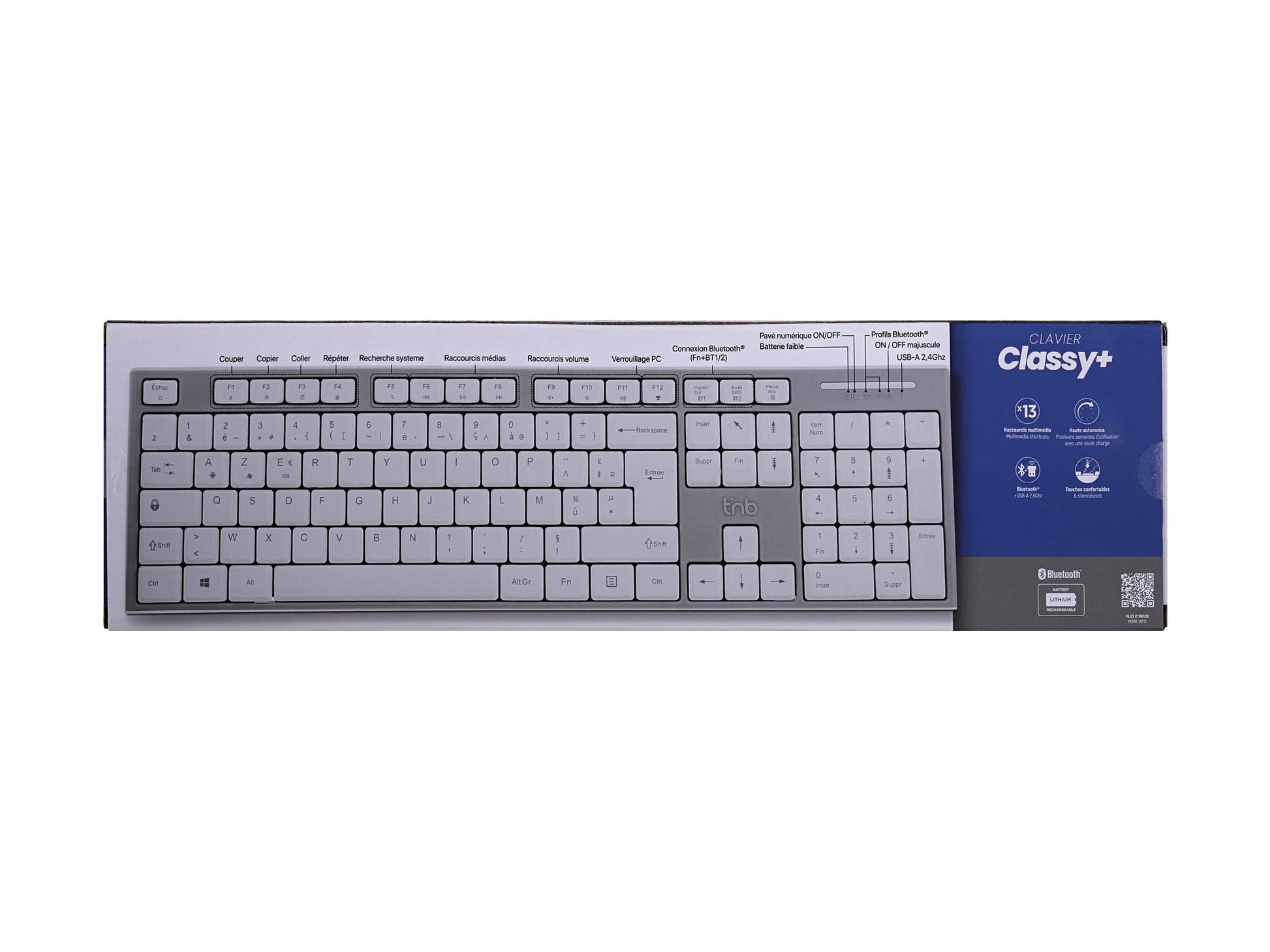 TNB CLASSY + - Clavier sans fil rechargeable Bluetooth + USB-A 2,4 Ghz AZERTY (FR)
