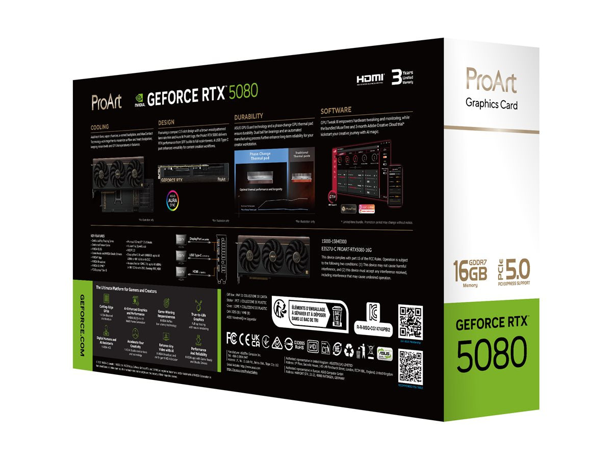 ASUS ProArt GeForce RTX 5080 16Go GDDR7 Graphics card 3xHDMI 2.1 2xDisplayPort 2.1a