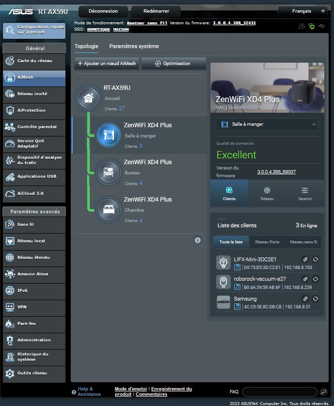 | Le système ZenWiFi XD4 Plus se compose de trois routeurs ASUS AX1800 Wi-Fi 6, dotés de technologies uniques qui vous offrent des connexions Wi-Fi ultrarapides, fiables et sécurisées - à l'intérieur ou à l'extérieur de votre maison ! | |