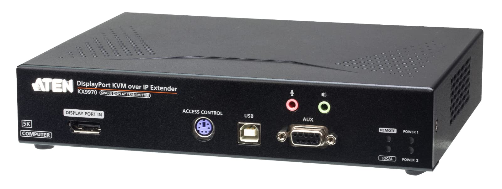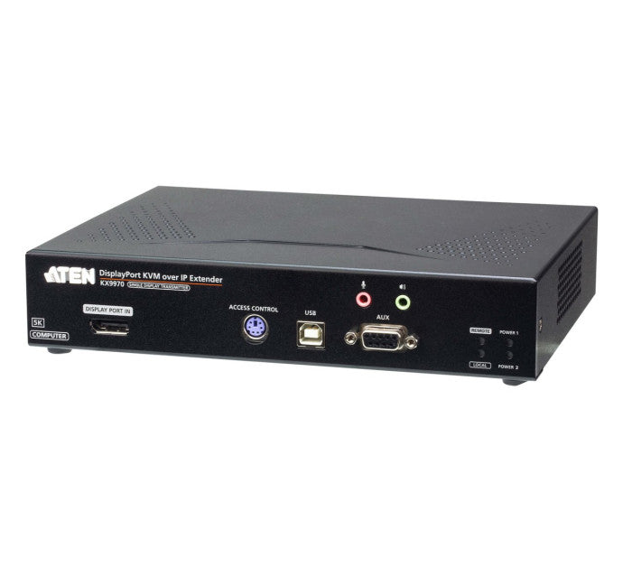 Le KX9970T est un transmetteur KVM sur IP hautes performances qui assure la connexion à un ordinateur DisplayPort ainsi quun accès sécurisé, à distance et ininterrompu à lordinateur à partir dune console KVM 5K DisplayPort connectée à un récepteur KX9970R via un Intranet ou un LAN dédié. Grâce à la console du récepteur installée à un emplacement séparé du transmetteur au sein dun réseau IP standard, les opérations critiques de la salle de contrôle deviennent plus ergonomiques, centrées sur lutilisateur et axées sur les tâches, tout en restant tenues à lécart de toute interférence environnementale défavorable.