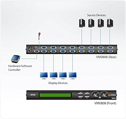 | Contenu de l'emballage | - 1x VM0808 8x8 Video Matrix Switch - 1x Power Cord - 1x IR Remote Control - 1x IR Receiver - 1x Mounting Kit - 1x User Instructions |