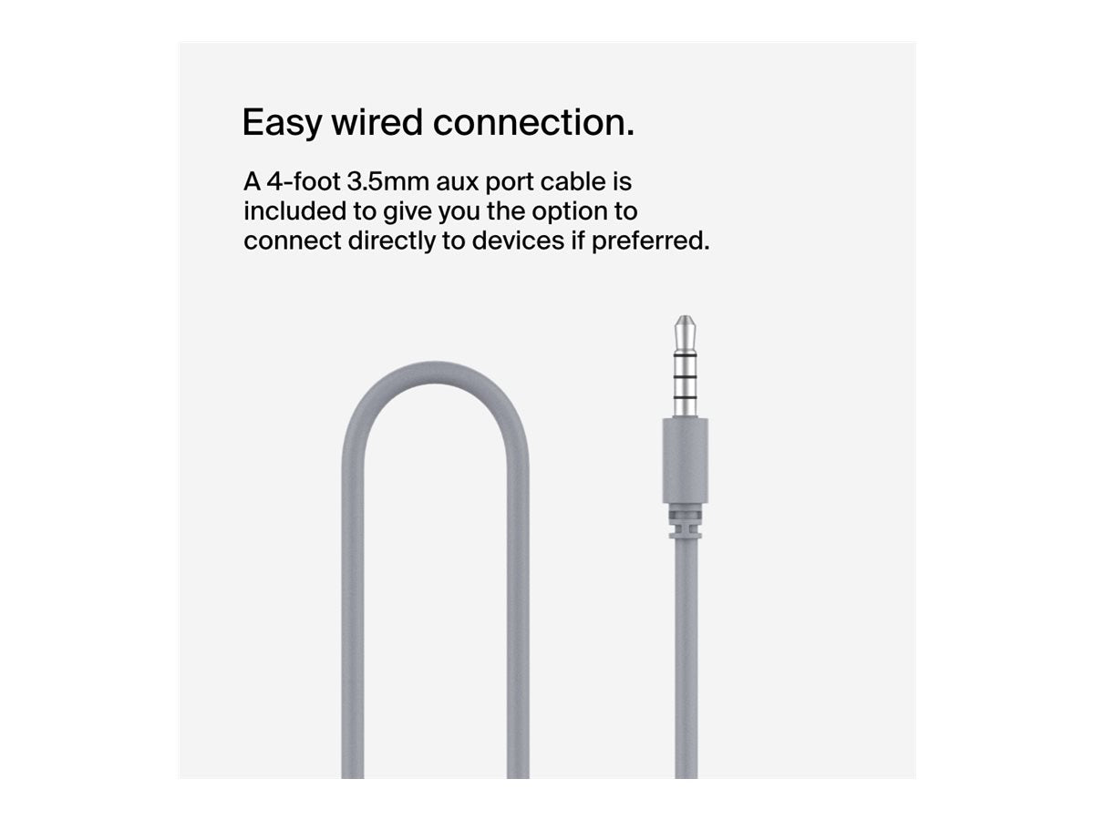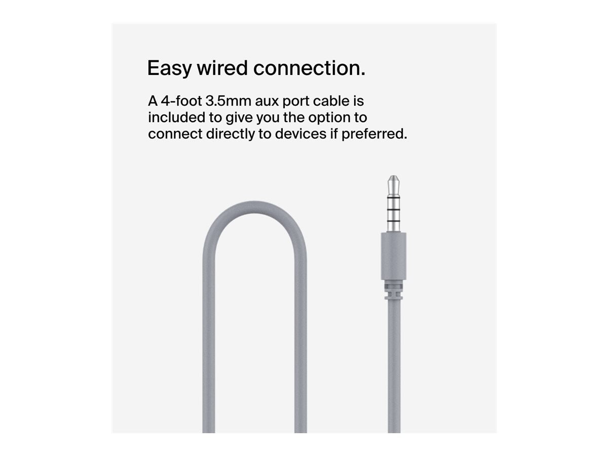 Conçus pour résister aux accidents et aux déversements, ces écouteurs sont particulièrement adaptés aux plus jeunes membres de votre famille, offrant une tranquillité d'esprit aux parents soucieux de la longévité de leurs investissements audio. De plus, la capacité de charge rapide signifie que ces écouteurs sont prêts à fonctionner quand vous l'êtes, ce qui minimise les temps d'arrêt et améliore l'expérience d'écoute. Que ce soit à des fins éducatives, de divertissement ou pour rester connecté, le casque SoundForm Mini de Belkin est un excellent choix pour tous ceux qui recherchent un équipement audio fiable et de haute qualité. |