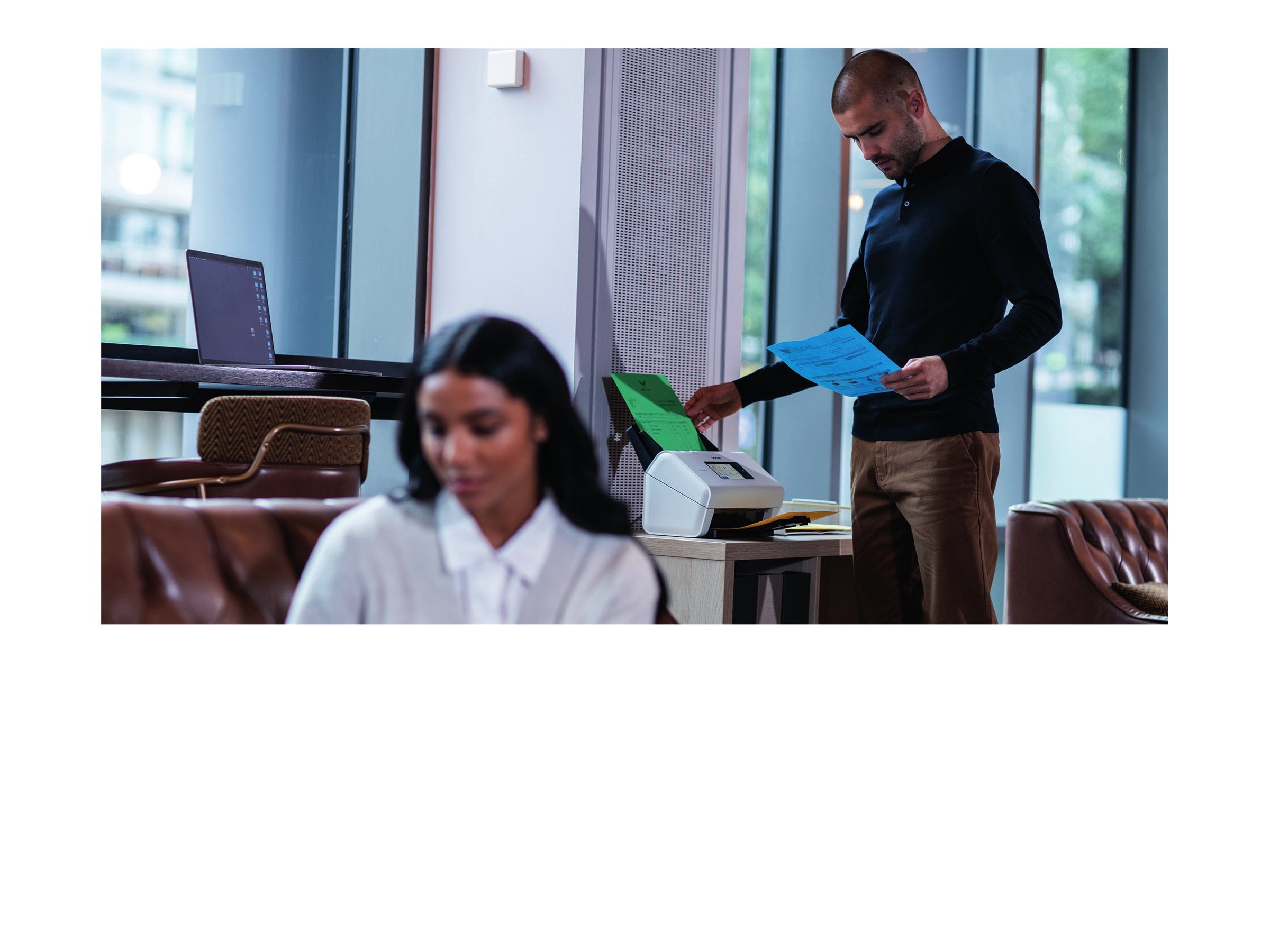 | Pour une numérisation en continu de plusieurs lots de documents. Grâce à la simplicité de la numérisation en "One Touch", numérisez, envoyez et recevez en toute sécurité des documents professionnels, à la maison ou au bureau. | |