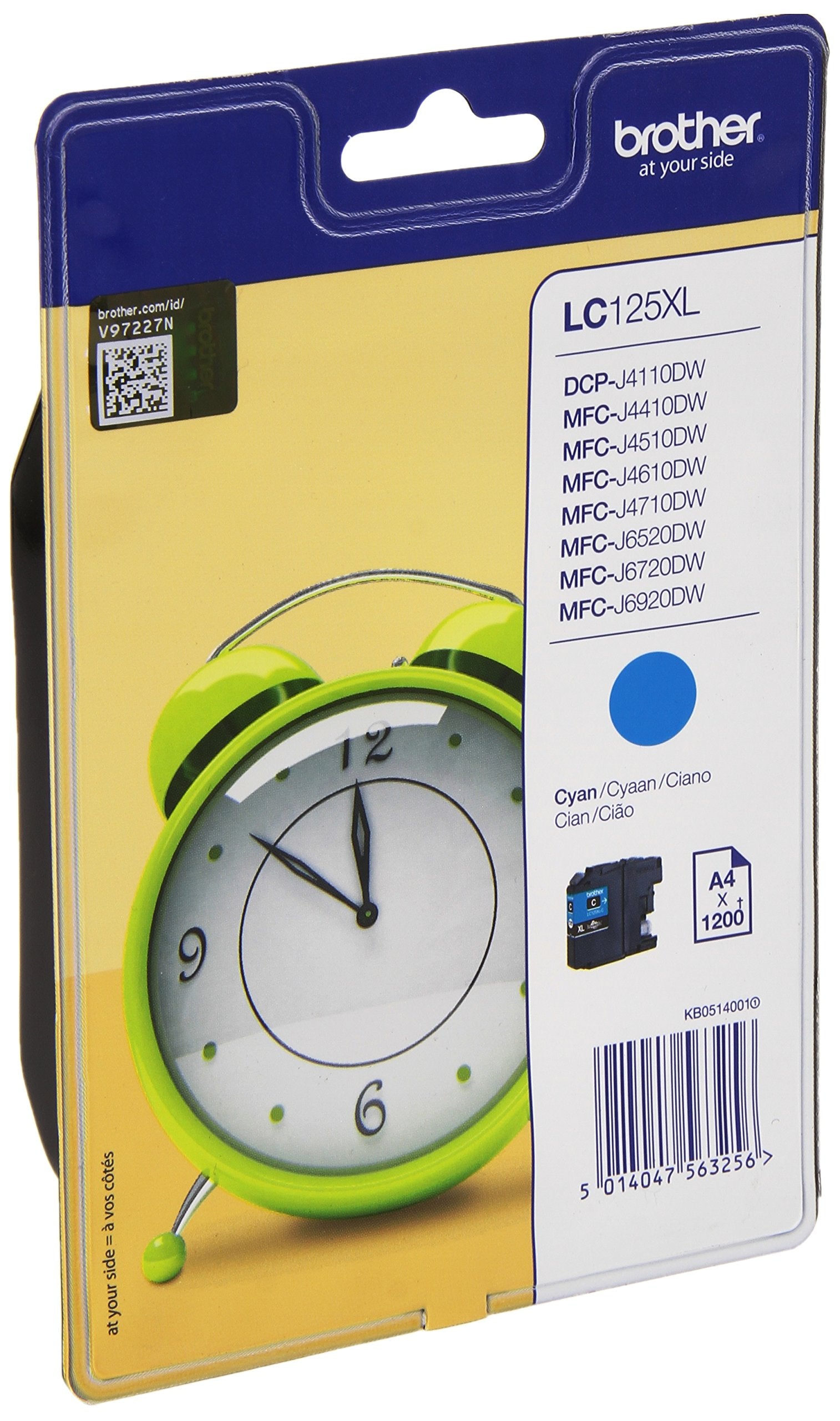BROTHER LC-125XL cartouche dencre cyan haute capacité 1.200 pages 1-pack blister sans alarme