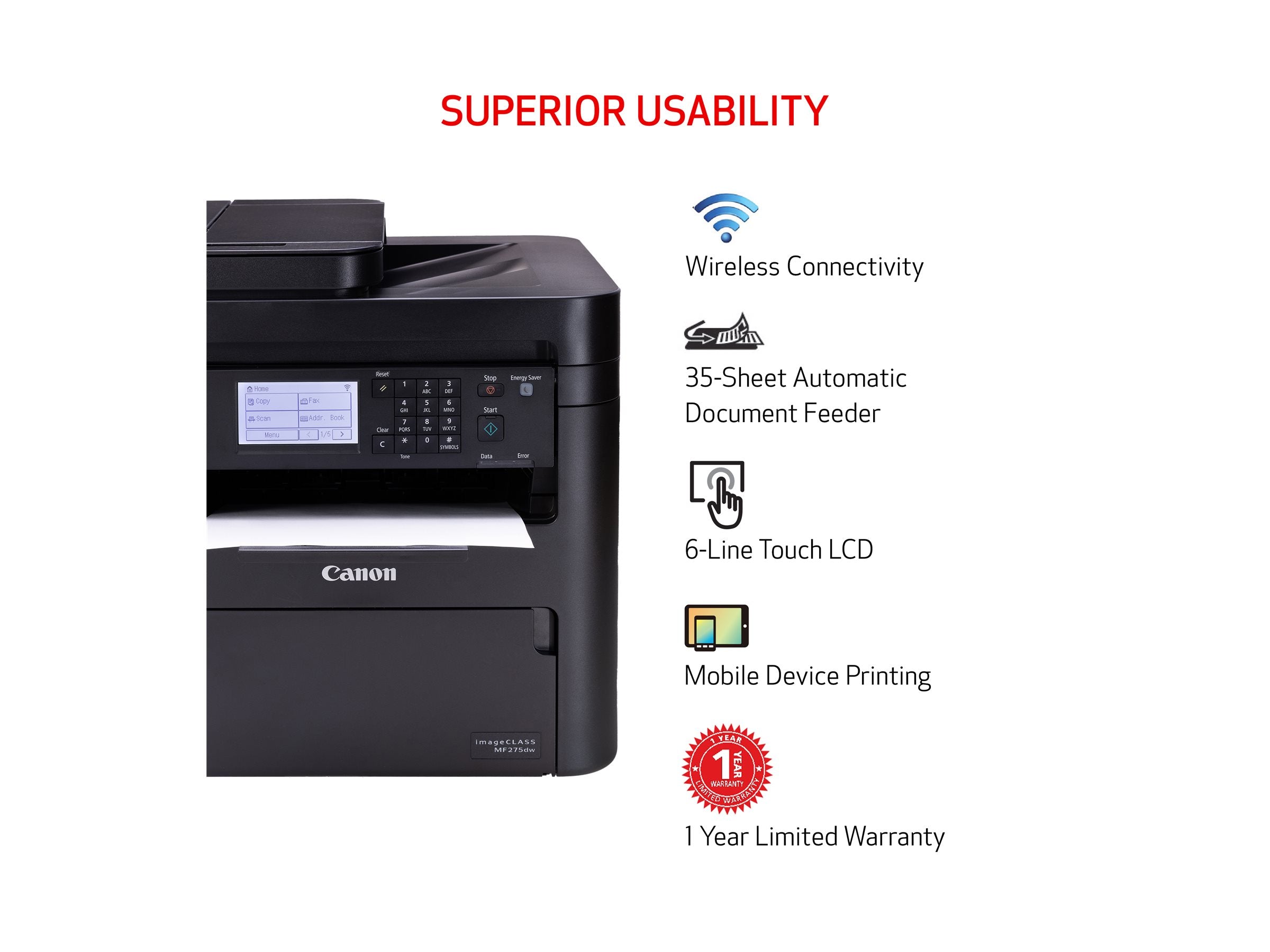 | Description du produit | Canon i-SENSYS MF275dw - imprimante multifonctions - Noir et blanc |