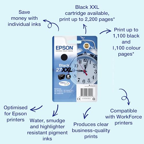 EPSON 6LB 27XXL ink cartridge black extra high capacity 34.1ml 2.200 pages 1-pack blister without alarm - DURABrite ultra ink