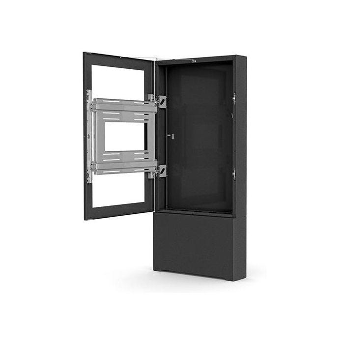 Compatible avec des écrans jusqu'à 127 cm, ce kiosque est disponible en noir, avec des options de couleurs personnalisées sur commande.