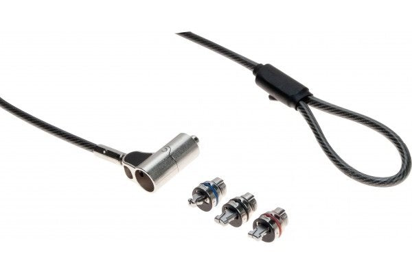 Cet antivol modulaire multitête est équipé d une serrure à clé de sécurité et d un cordon acier de 2 mètres. Il permet d attacher un ordinateur à un point d ancrage fixe (pied de table, poteau, etc)