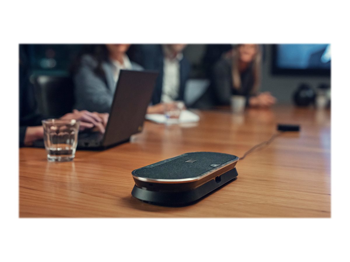 | Fédérez vos collègues grâce à un speakerphone évolutif premium Bluetooth adapté pour des réunions jusqu'à 16 personnes, en présentiel. Faites-vous clairement comprendre grâce à six microphones adaptatifs dotés d'une technologie de formation automatique de faisceaux qui isolent les voix humaines des effets de la réverbération et des bruits ambiants. Profitez d'un speakerphone supérieur au son remarquable et naturel. | |