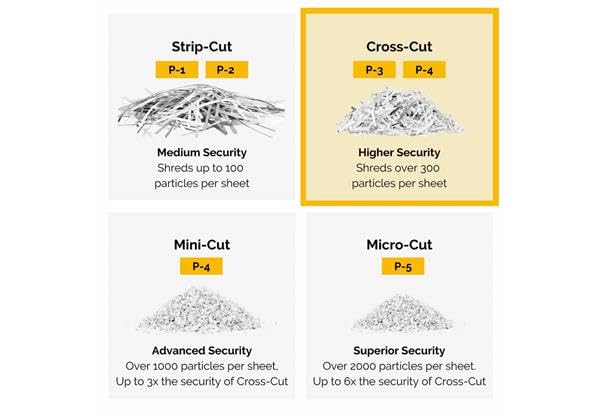Eléments à déchiqueter | Papier, agrafes, cartes de crédit, trombones |