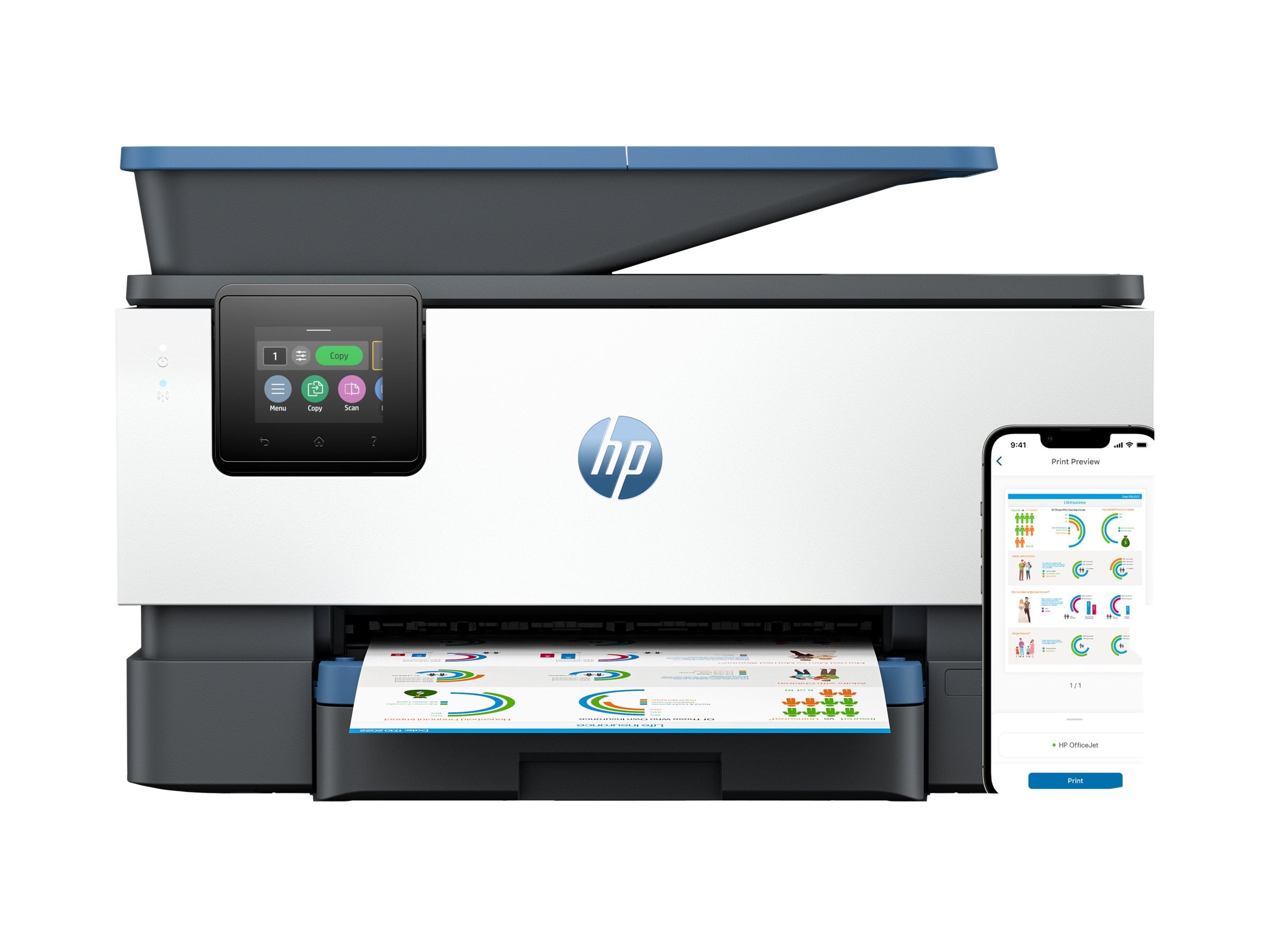HP Officejet Pro 9125e All-in-One MFP colour inkjet A4 21ppm Copy 22ppm Print 250sheets Wi-Fi LAN USB Bluetooth Crater Lake blue