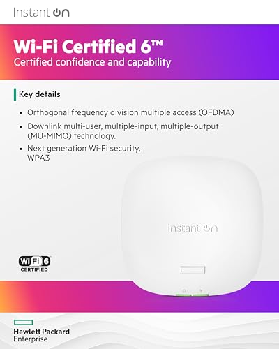 | Description du produit | HPE Networking Instant On AP22 (RW) - borne d'accès sans fil - Bluetooth, Wi-Fi 6 |