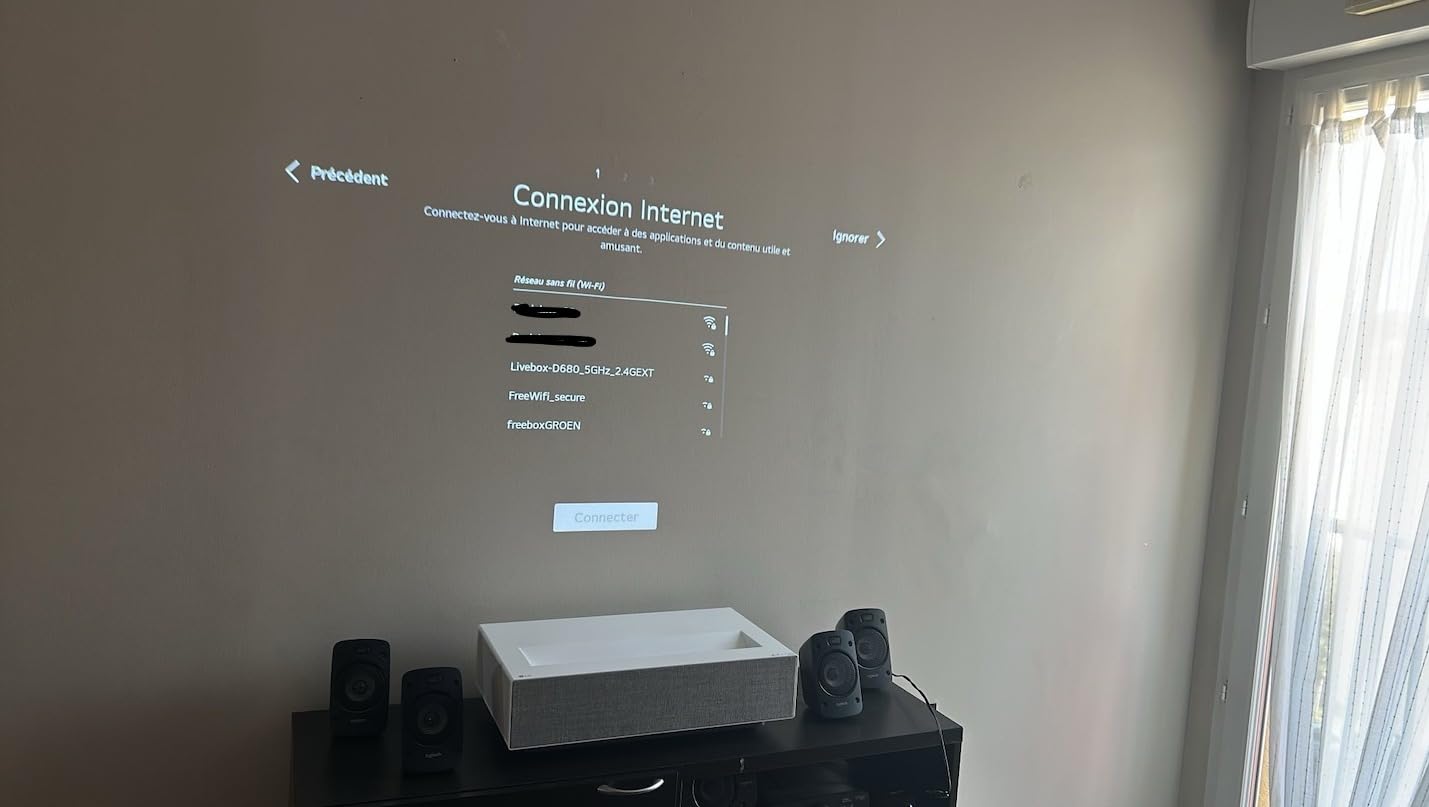 Avec le projecteur LED UHD LG 4K, vous pouvez profiter d'un véritable environnement cinématographique avec un écran de projection allant jusqu'à 140 pouces. |