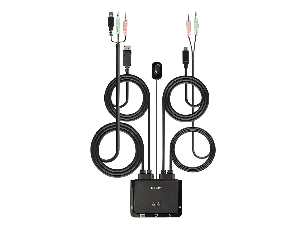 | Description du produit | Lindy 2 Port DisplayPort 1.2, USB Type C, USB 2.0 & Audio Cable KVM Switch - commutateur écran-clavier-souris/audio - 2 ports |