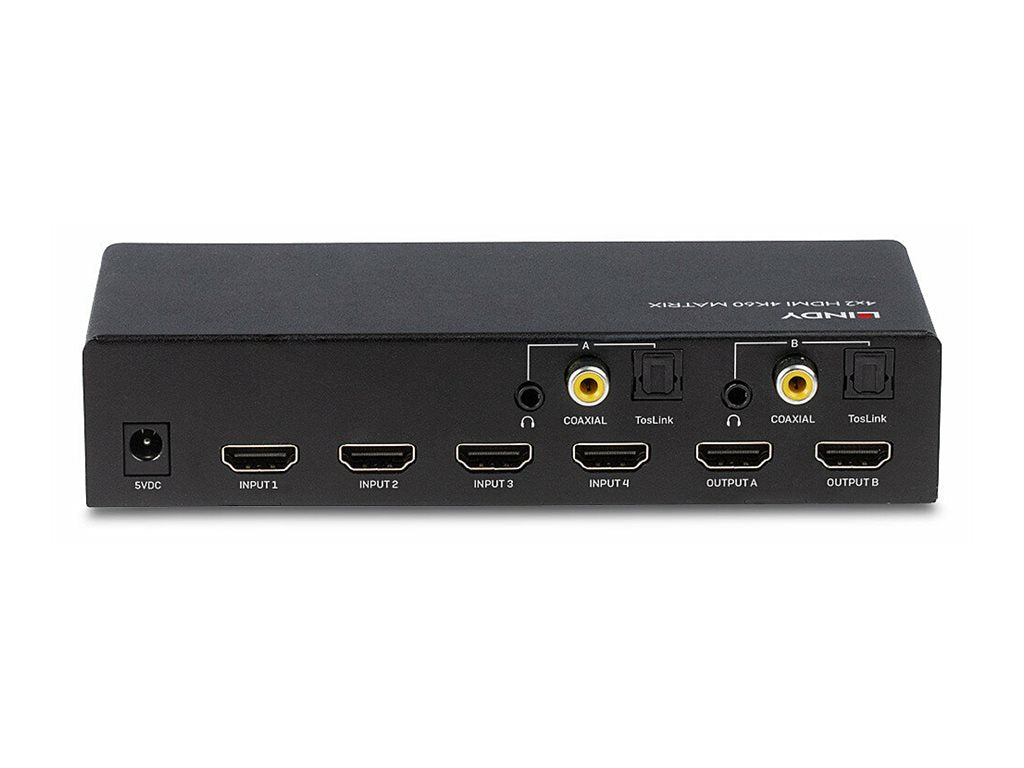 Le Switch Matrix 4x2 HDMI 18G de LINDY est une solution hautes performances pour la distribution de contenu à partir de plusieurs appareils sources vers deux écrans. Prenant en charge les signaux HDMI 2.0 18G, cette matrice permet la transmission de résolutions 4K Ultra HD 60 Hz nettes, tandis que la prise en charge HDR (High Dynamic Range) permet de visualiser le contenu vidéo avec une luminosité améliorée, des contrastes exceptionnels et une gamme de couleurs beaucoup plus étendue, parfait pour les affichages Digital Signage dans les commerces ou la restauration ou pour la création d'installations éducatives attrayantes. La prise en charge HDCP 2.2 permet d'éviter tout problème avec une variété de contenus 4K lors de la connexion à des sources comme les Set Top Box, les lecteurs Blu-ray et les lecteurs multimédias 4K HDR.