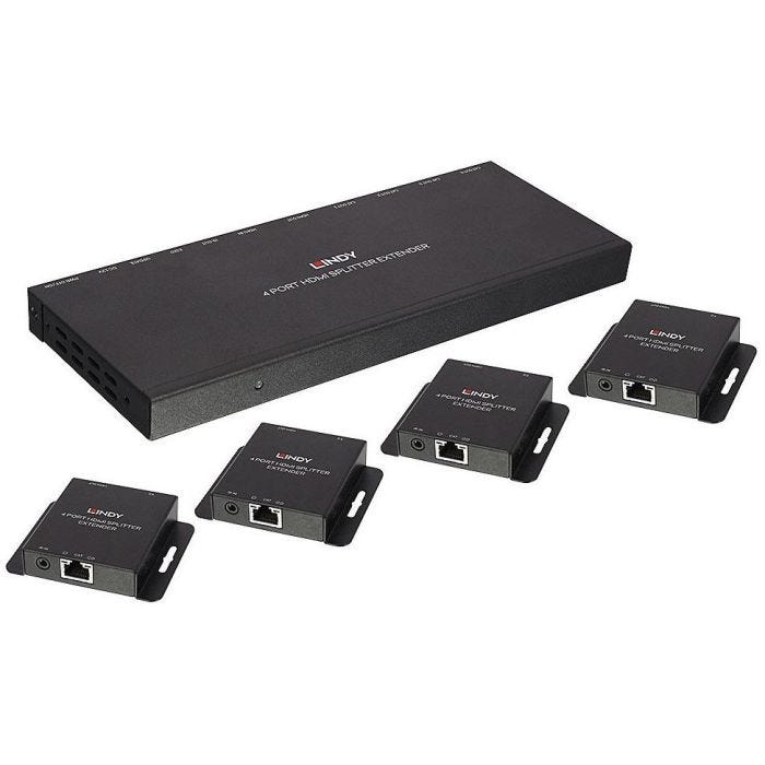 Le Splitter Extender HDMI & IR Cat.6 4 Ports 50m Lindy est une solution plug and play simple à utiliser qui permet aux utilisateurs d'étendre un signal HDMI jusqu'à 50 mètres et de le distribuer sur quatre affichages en utilisant des câbles Cat.6 UUTP (non fourni). Pour plus de souplesse, les signaux infrarouge sont également transmis (20-60kHz) en utilisant les câbles IR (capteur et émetteur) compris dans la livraison.