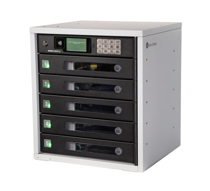 -Fournissez une solution de rechargement et de stockage sécurisé des appareils, disponible à la demande ou en libre-service