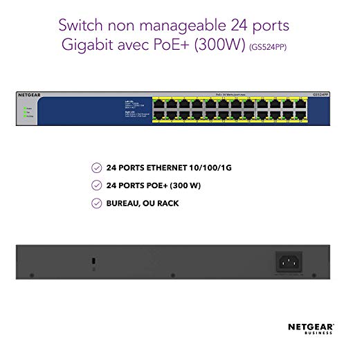 | Description du produit | NETGEAR GS524PP - commutateur - 24 ports - non géré - Montable sur rack |