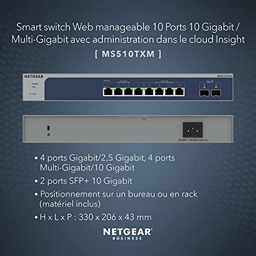 | Description du produit | NETGEAR Smart MS510TXM - commutateur - 8 ports - intelligent - Montable sur rack |