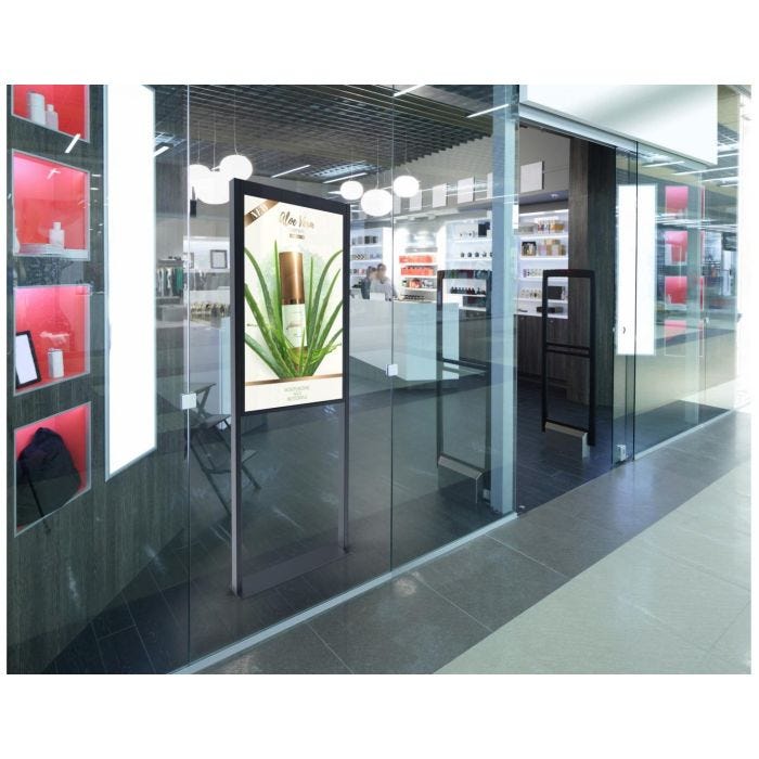 Sa finition noire s'intègre facilement dans divers environnements commerciaux.