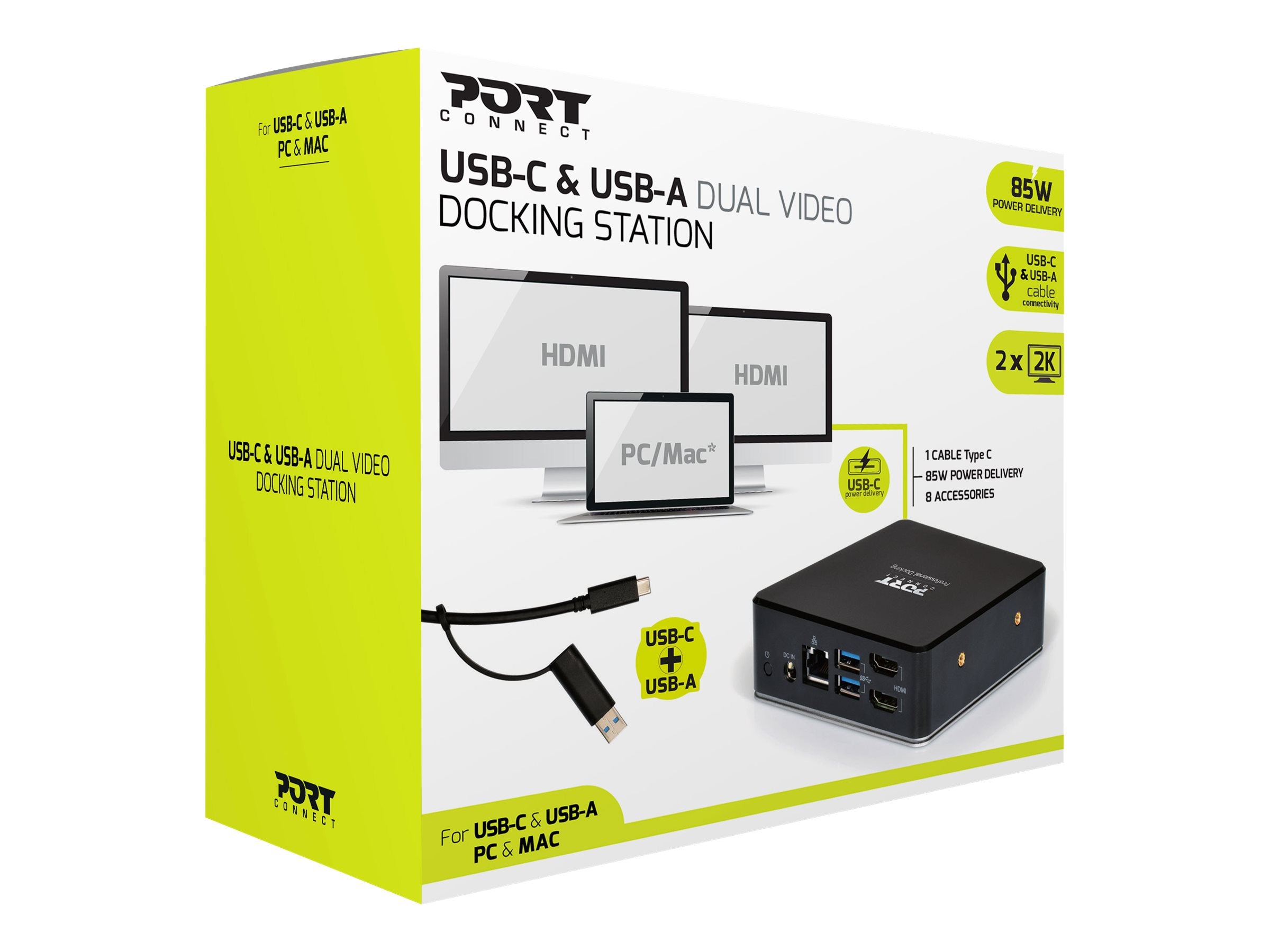 | Description du produit | PORT connect USB-C & USB-A Dual Video Docking Station 2 X 2K - station d'accueil - USB-C / USB 3.0 - 2 x HDMI - 1GbE |