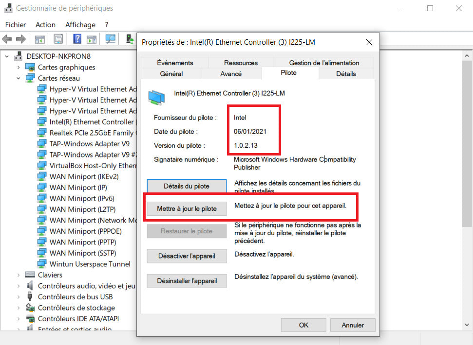 | Type de périphérique | Adaptateur réseau |