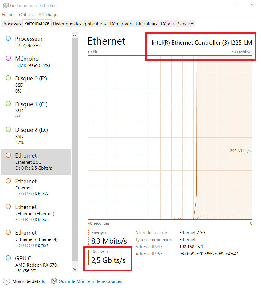 | Type de câblage | Ethernet 10Base-T, Ethernet 100Base-TX, Ethernet 1000Base-T, Ethernet 2.5GBase-T |