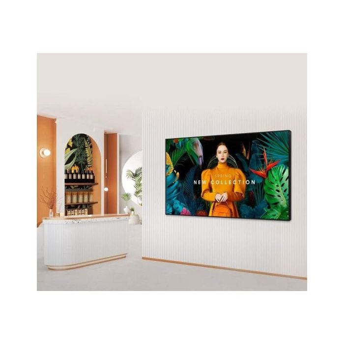 Le Samsung QH98C offre un écran 4K UHD de 98 pouces qui fait une impression frappante dans n'importe quel environnement, parfait pour l'affichage numérique et l'utilisation commerciale. Avec une résolution de 3840 x 2160 et une luminosité de 700 cd/m2, les images restent nettes et éclatantes, même dans les environnements très éclairés. Cet écran présente un design fin avec un cadre uniforme, ce qui lui permet de s'intégrer parfaitement dans n'importe quel environnement tout en attirant l'attention.