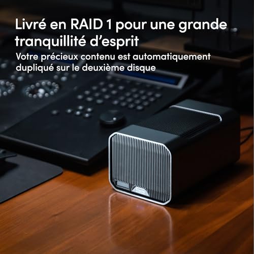 Caractéristiques | Prêt pour RAID, fente PRO-BLADE SSD Mag, compatible avec Apple Time Machine, Enterprise Class, fente de verrouillage de sécurité (câble de verrouillage vendu séparément), chaînage des tâches, RAID 1+0 - configuration d'usine, commutateur RAID, baie RAID à 2 emplacements |