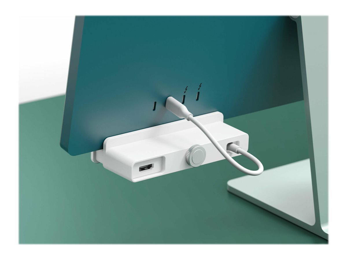 Étendez la connectivité de votre nouvel iMac 24" avec un hub USB-C facile à fixer, doté d'une plaque frontale sans couture et de couleur assortie, conçue pour toutes les options de couleur de l'iMac. Incluant les ports HDMI 4K et MicroSD/SD.
