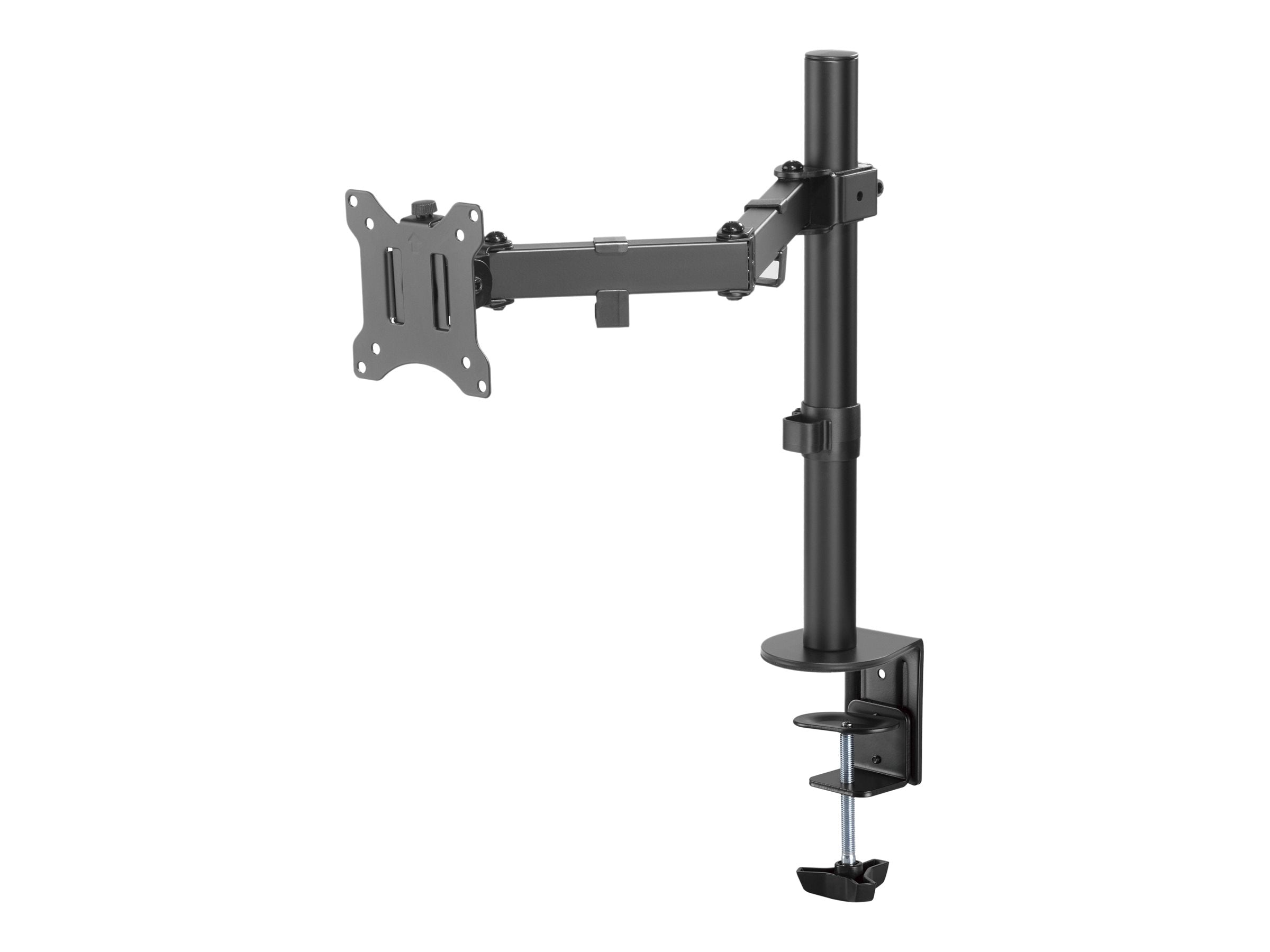 Sa finition en acier lui assure une solidité et une durabilité optimale. L'articulation du bras et de la tête, combiné à sa rotation 360° autour du pôle vous permettent à coup sûr de trouver la position idéale pour votre moniteur. Les clips guident les câbles jusqu'à l'écran et permettent d'organiser et de dégager votre bureau. Installation ultra simple grâce à sa vis de serrage convenant pour tous les bureaux de 10 à 85 mm d'épaisseur. Supporte les écrans jusqu'à 8 kg. Angle de pliage du bras : +/-90°. Angle d'inclinaison de la tête : +/-45°. |