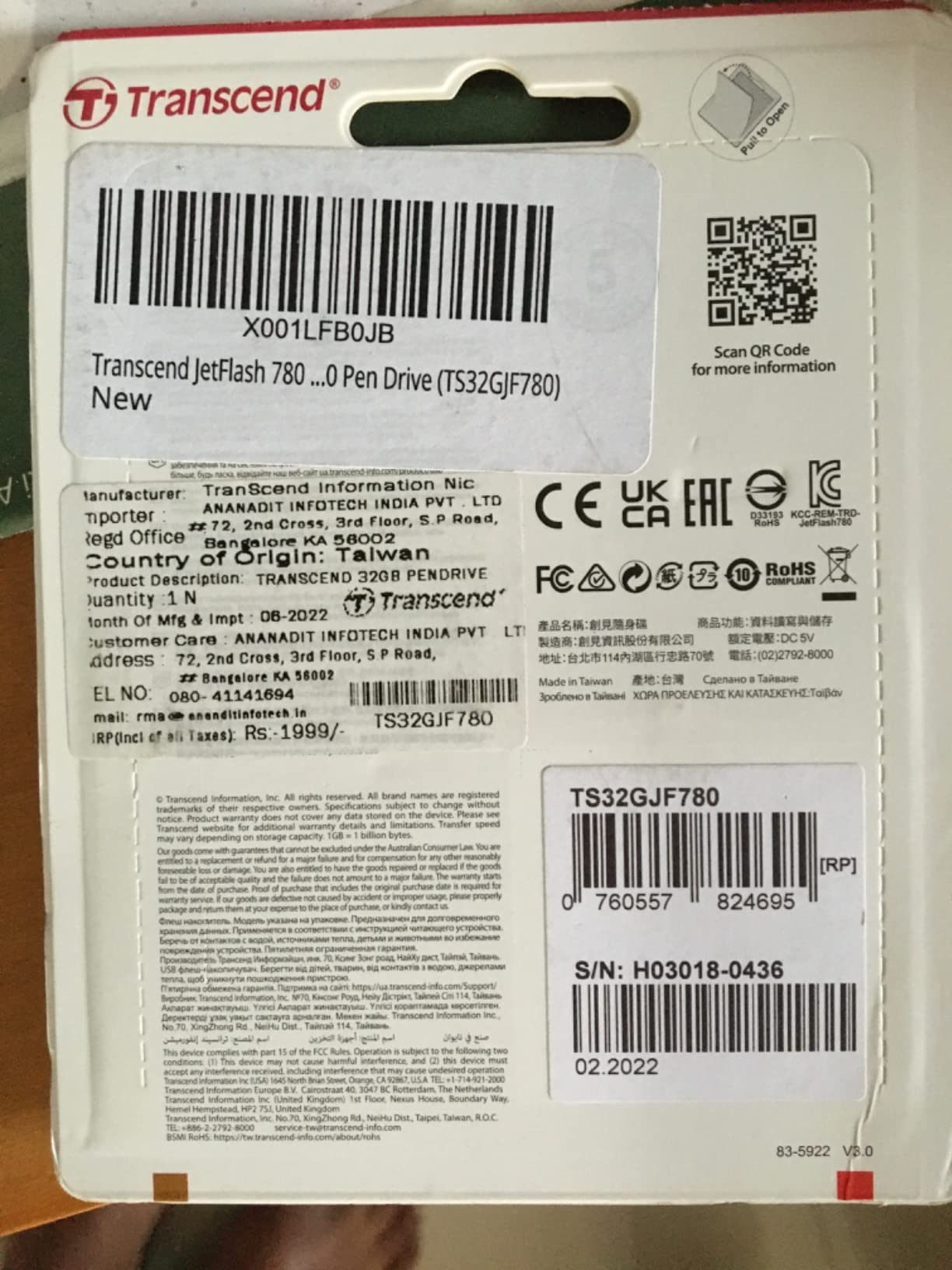 | Description du produit | Transcend JetFlash 780 - clé USB - 8 Go |