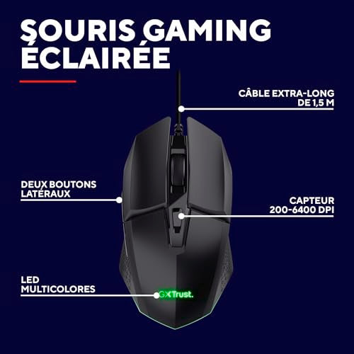 TRUST Souris gaming filaire FELOX rétroéclairée - Noire
