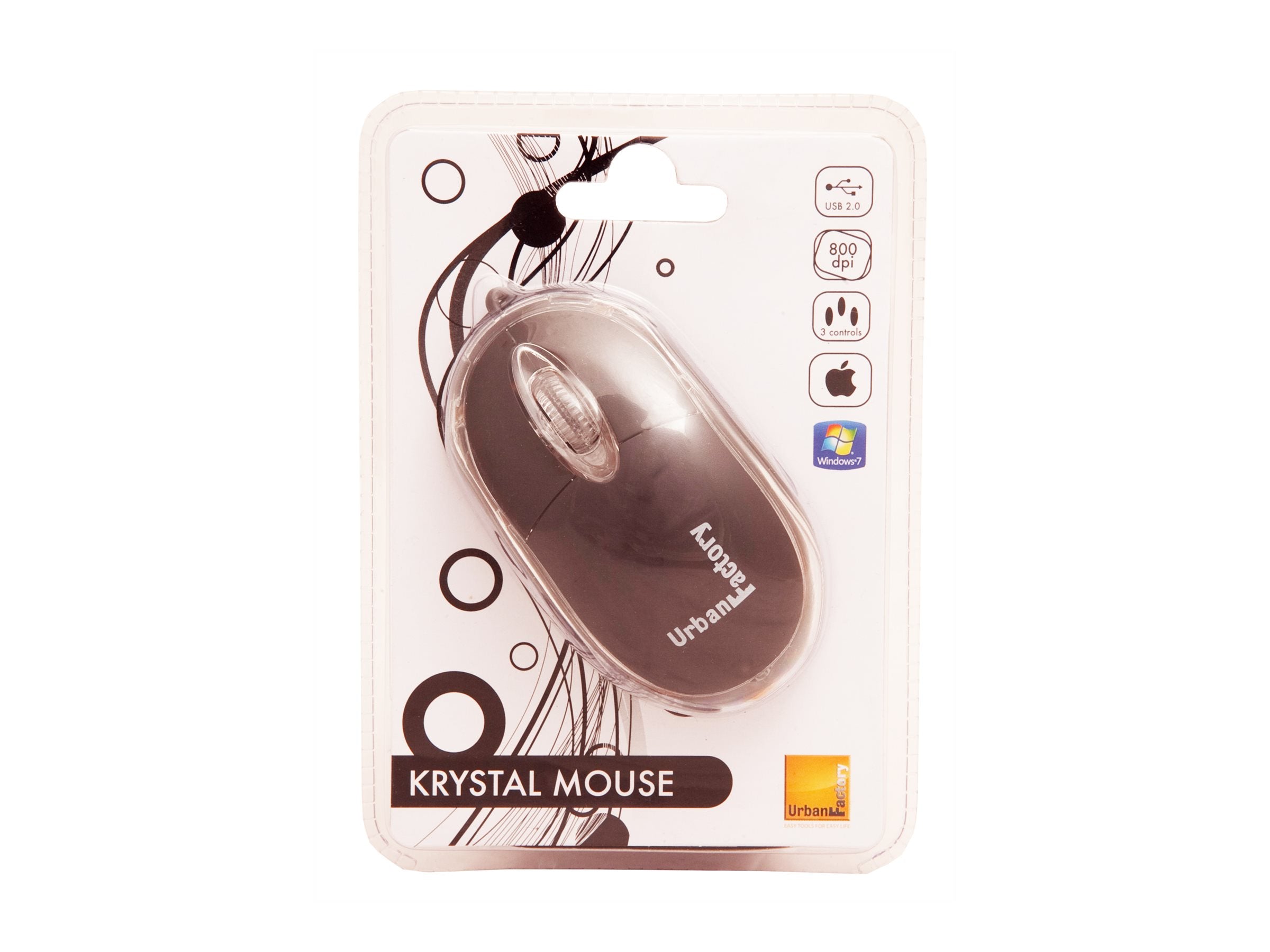 | Description du produit | Urban Factory Cristal Mouse Optical USB 2.0, 800dpi, Internal Light, Black - souris - USB - noir, transparent |